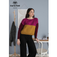 De trui wordt vanaf beneden omhoog gebreid in drie kleuren met een verdeelde tailleboord. Het lijf wordt in het rond gebreid, met een kleurenwisseling net vóór het armsgat. De mouwen worden in het rond gebreid vanaf boven naar beneden in een derde kleur en eindigen met een boord. De halsrand eindigt met een i-cord.