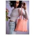De tas is rondgehaakt in een spiraal met gedraaide vaste steken, de hengels worden apart gehaakt en vastgenaaid. Hang de tas om de schouder en neem hem overal mee naartoe!