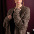 Gehaakt lang vest met ballonmouwen in een mooi kant patroon. Tencel Blow-garen  heeft een glans en geeft het vest karakter, maar is ook zacht en comfortabel om te dragen. Je begint met het achterpand en haakt in lijnen tot het tijd is voor het deel van het voorpand. De mouwen zijn apart gehaakt en worden vastgenaaid onder het armsgat. Als laatst haak je de halslijn en de randen voor.
