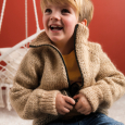 Een warm en knuffelig gebreide “fleecetrui” voor kinderen die van boven naar beneden wordt gebreid met zakken, dubbel gevouwen halskraag en een rits die wordt gemonteerd met voering langs de binnenkant.