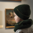 Een eenvoudig in boordsteek van beneden naar boven gebreide muts. Een uniek exemplaar door de festonsteken die genaaid worden over de eerste toer.