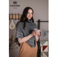 Poncho met hoge col die in het rond gebreid wordt vanaf boven naar beneden. De poncho heeft een decoratieve boord bestaand uit drie strepen en eindigt met een rand in ribbelsteek.