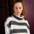 Een heerlijk lang vest perfect om in weg te kruipen als de winter komt. Het vest is gebreid van beneden naar boven gebreid met dubbel garen en begint met italiaanse opzet voor de manchet. De zijkant is opgesplitst tot de taille waar het voor- en achterstuk worden samengevoegd om het lijf te breien en het wordt afgewerkt met een polokraag om het stuk te bekronen.