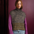 En oversized, gemeleerde statement-trui met een grote polokraag en meerkleurig gebreide onderkant met de averechte kant naar buiten toe als ook met contrasterende mouwen. De trui wordt van boven naar beneden gebreid, daarna worden de steken voor de mouwen opgepakt in het armsgat en naar beneden gebreid.
