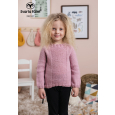Kindertrui die in het rond gebreid wordt vanaf beneden omhoog. Midden voor is een deel van ribbelsteek.