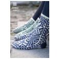 Het motief op deze sokken heet Sirapssnitt omdat de roosvorm met acht bloembladen is geplaatst om te lijken op een traditioneel ruitvormig Noors koekje. De inspiratie voor het patroon kwam oorspronkelijk van een duimmotief op een Selbu want die ik heb gebreid en de koekjesachtig vorm gaf de aanzet tot het ontwerpproces. Achtbladige rozen kunnen er verschillend uitzien, afhankelijk van de manier waarop ze zijn gerangschikt en in welke combinatie. Dit ontwerp bevat vuren twijgen in de roos en rond het hoofdmotief voor een spannende compositie. Het patroon komt op verschillende manieren tot uiting, afhankelijk van of het in de lengte is geplaatst zoals op deze sokken, of in de breedte zoals op de losse kol en de muts. Het wordt ook gebruikt als hoofdmotief op de wanten. Dit ontwerp kenmerkt de manier waarop ik werk, waarbij een en hetzelfde patroonidee op veel verschillende manieren wordt gevarieerd.